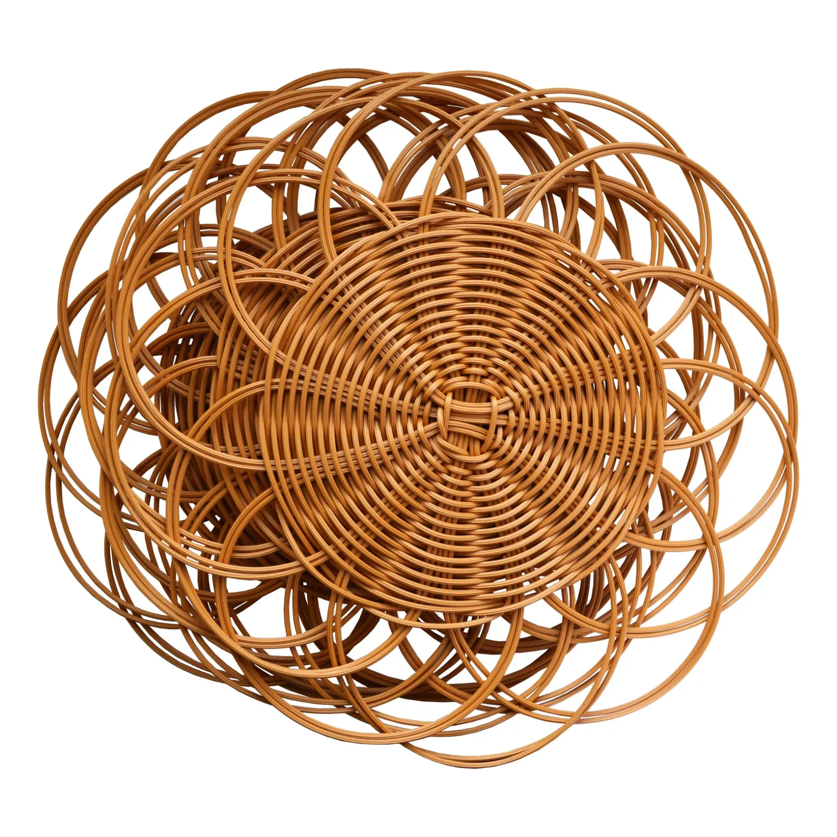 Hand woven hoop shaped chargers in natural color for easy entertaining.