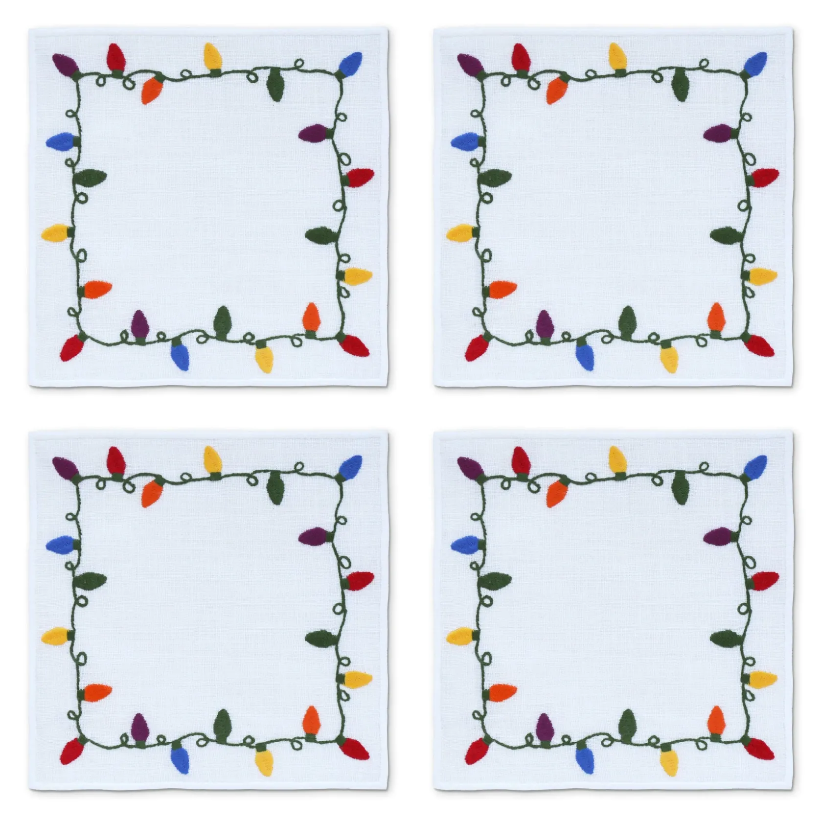 These cocktail napkins feature a Christmas lit border to match your holiday decorations.