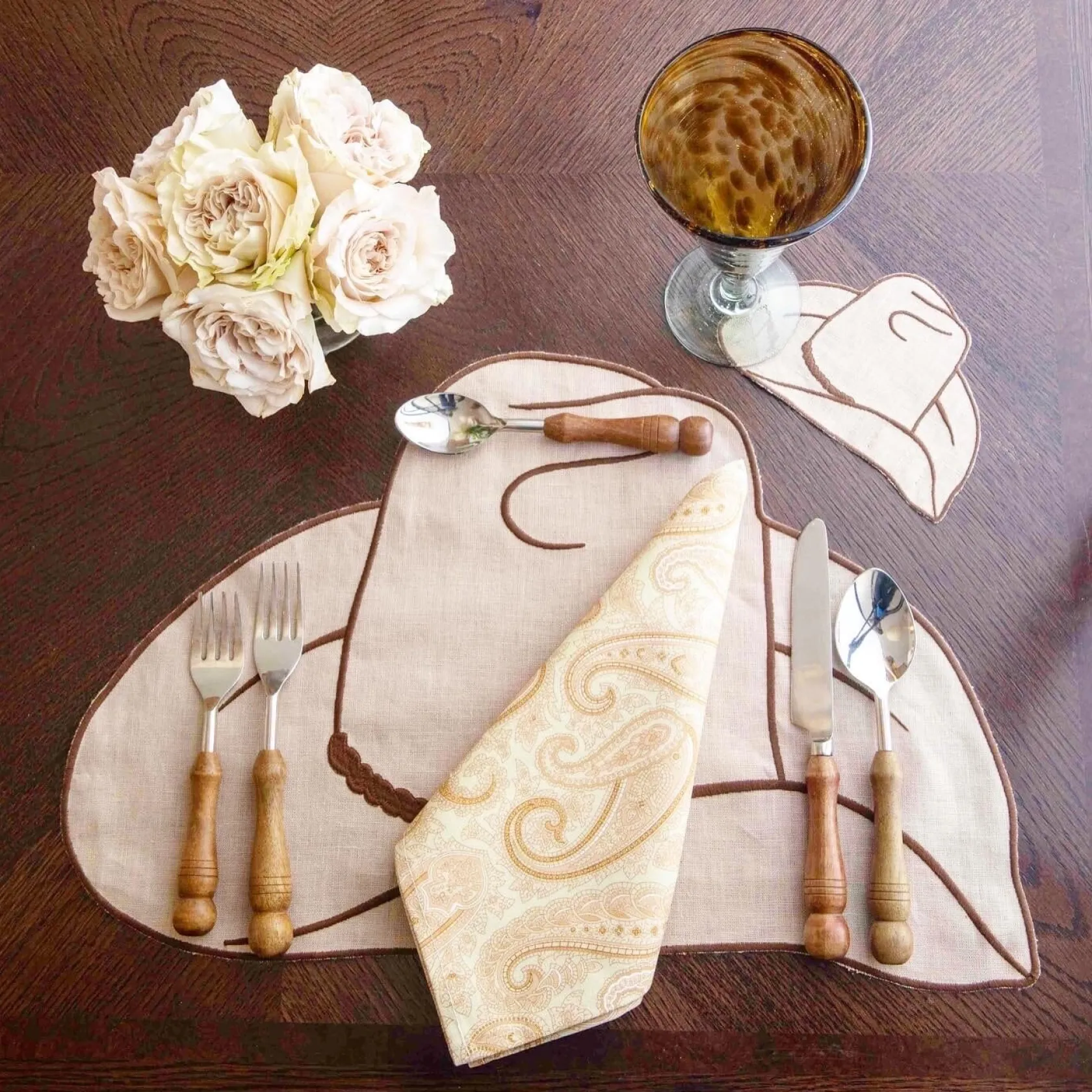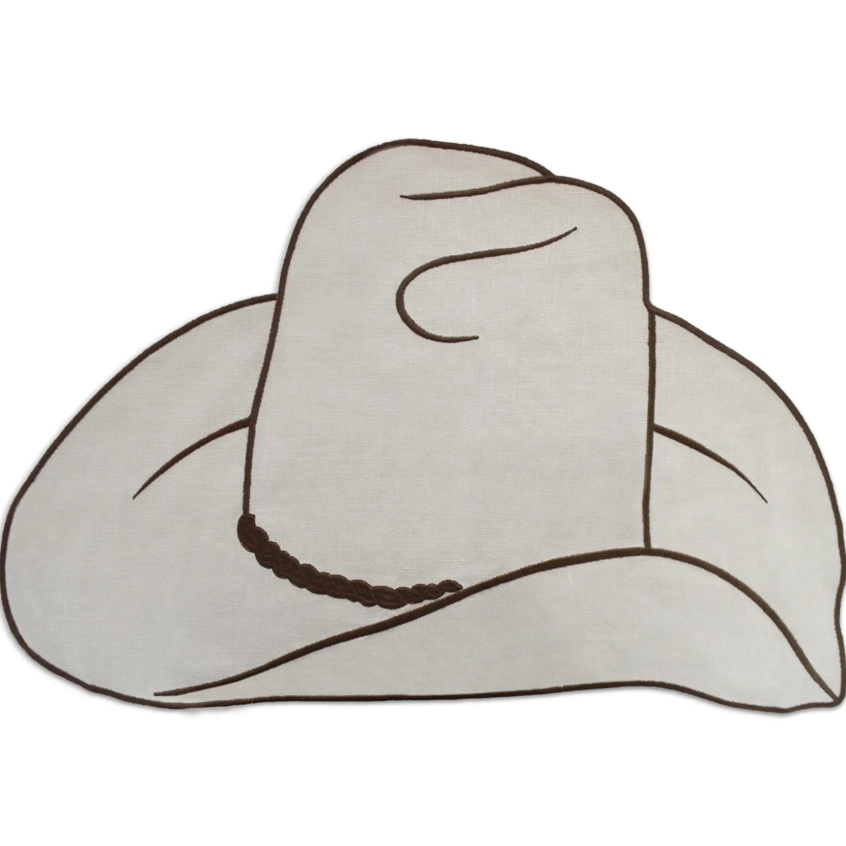 Shaped like a cowboy hat, this beige placemat might be the perfect accessory at a rodeo party or Southern celebration