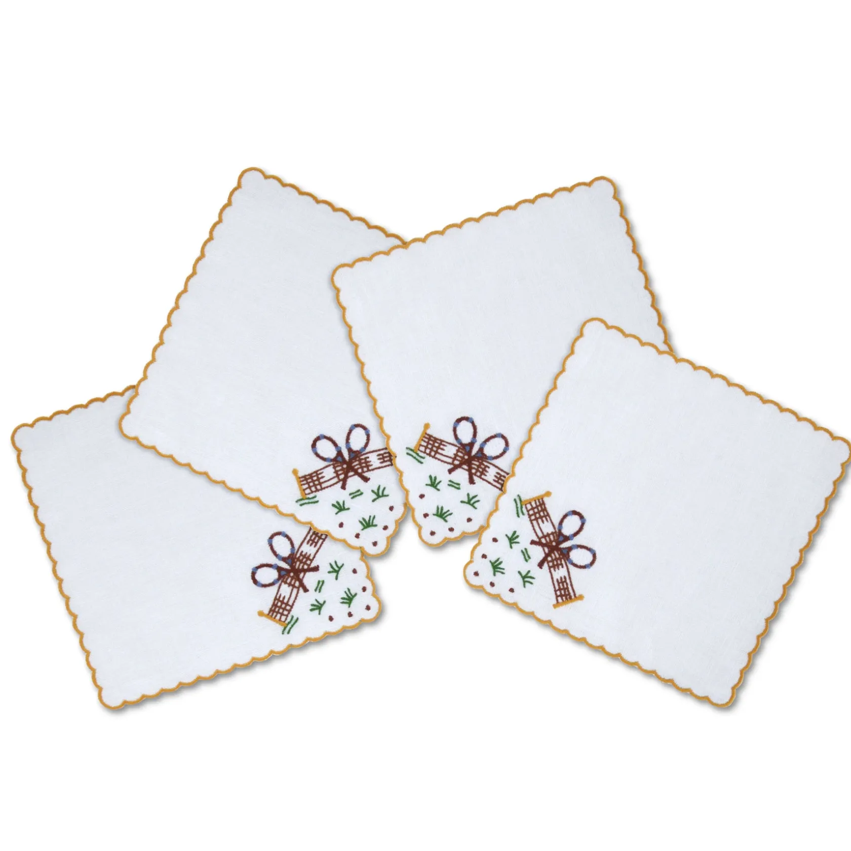 Inspired by vintage linens from Madeira depicting tennis, this cocktail napkin is perfect for tennis parties and fans.