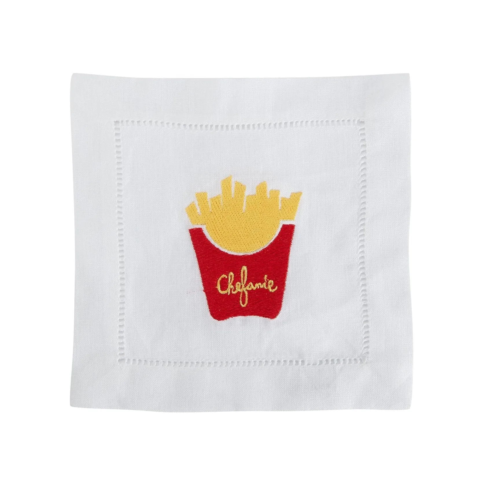 How else are you going to elevate your McDonald’s Dinner??? Even if you’re craving a big mac, you can be elegant. Each set of cocktail napkins includes the iconic fries and drink motifs– with the Chefanie touch.