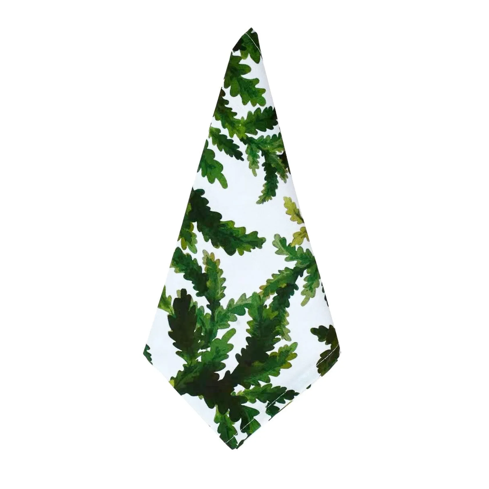 This set of 4 green leaf-patterned, square napkins are 18 inches x 18 inches.