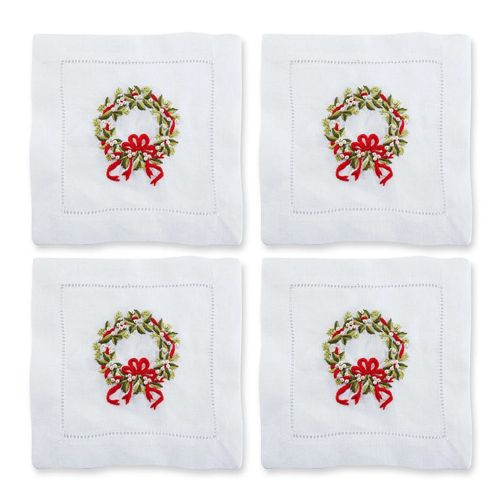 ‘Tis the season for decadence and cocktails! By hand, we’ve embroidered natural pearls into a festive wreath on linen cocktail napkins. It’s the ultimate gift for the host who has everything.
