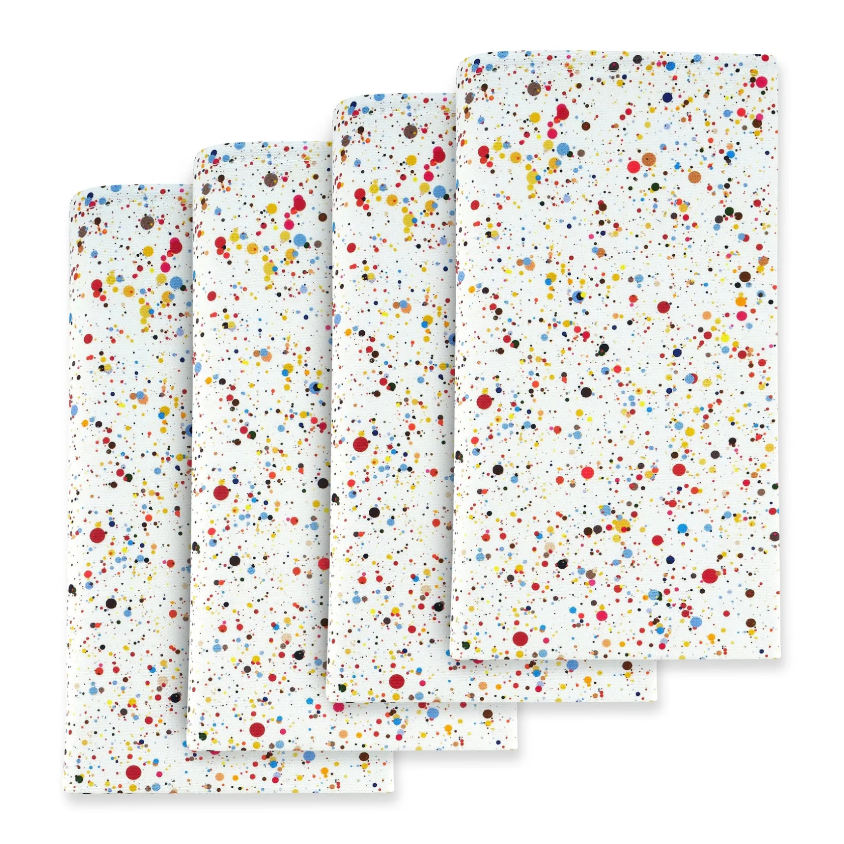 Jackson Pollack-inspired cotton napkins with a rainbow of splatter dots for any occasion that warrants a touch of whimsy. These linens match anything!
