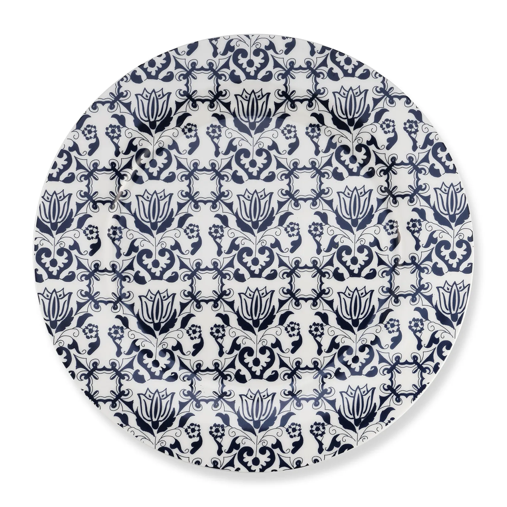 Elegant blue bone china plate perfect for Thanksgiving, Chanukah, and other festive events. Inspired by European tiles.