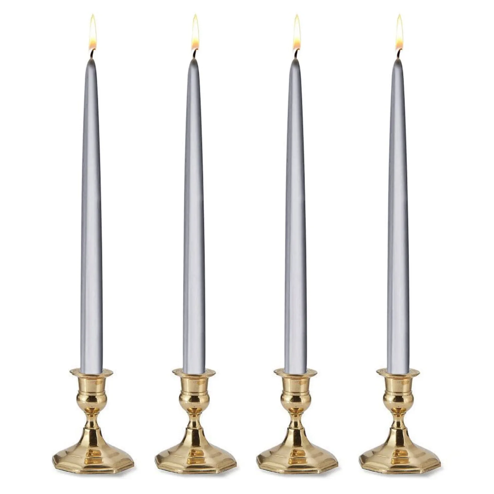 Metallic silver tapers set a festive ambiance.