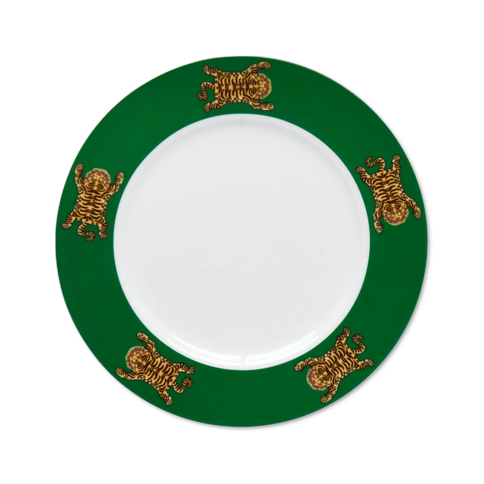 — 5 tigers on green rim of dinner plate