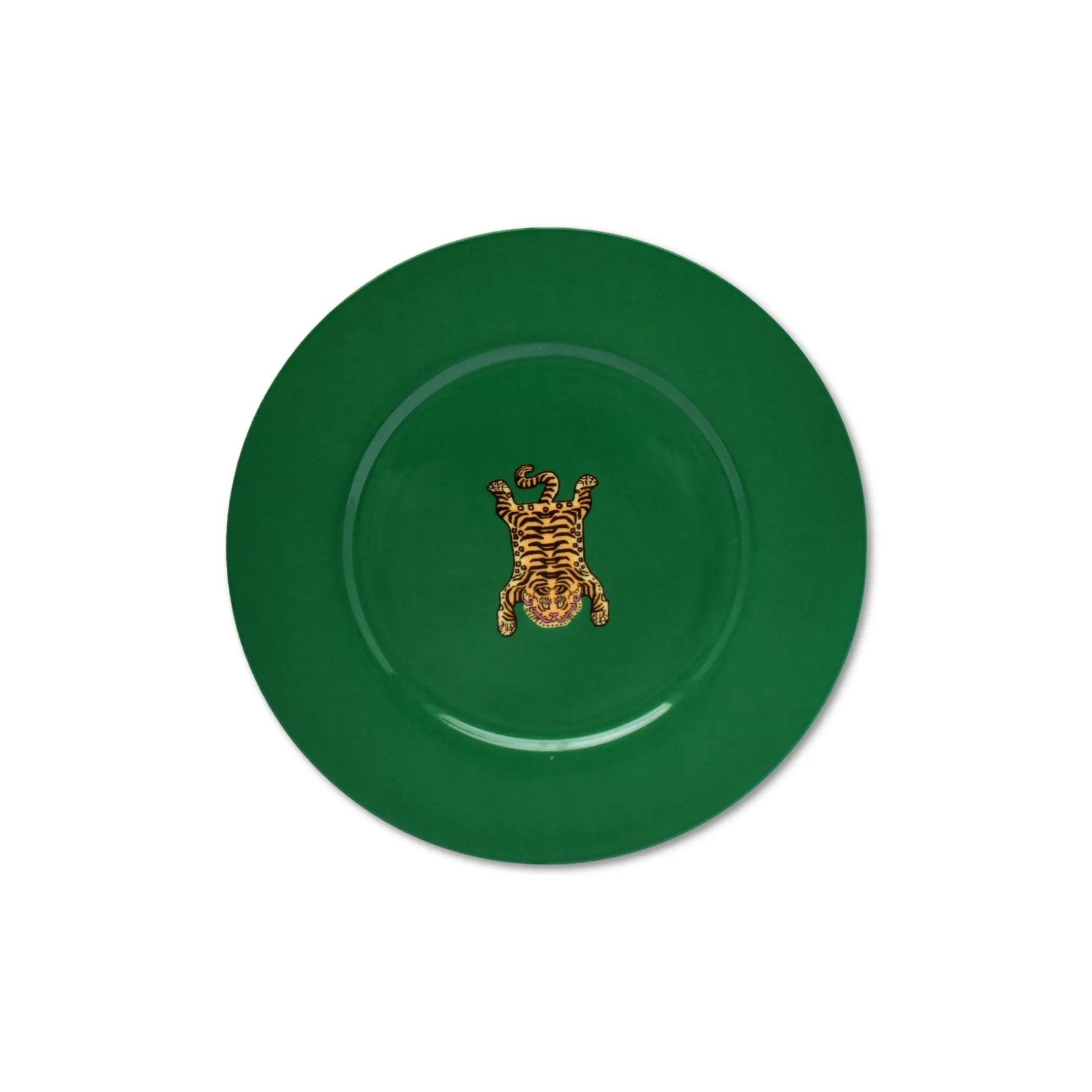 Inspired by the iconic Tibetan tiger, these green bone china plate perfect for Thanksgiving and other festive events.