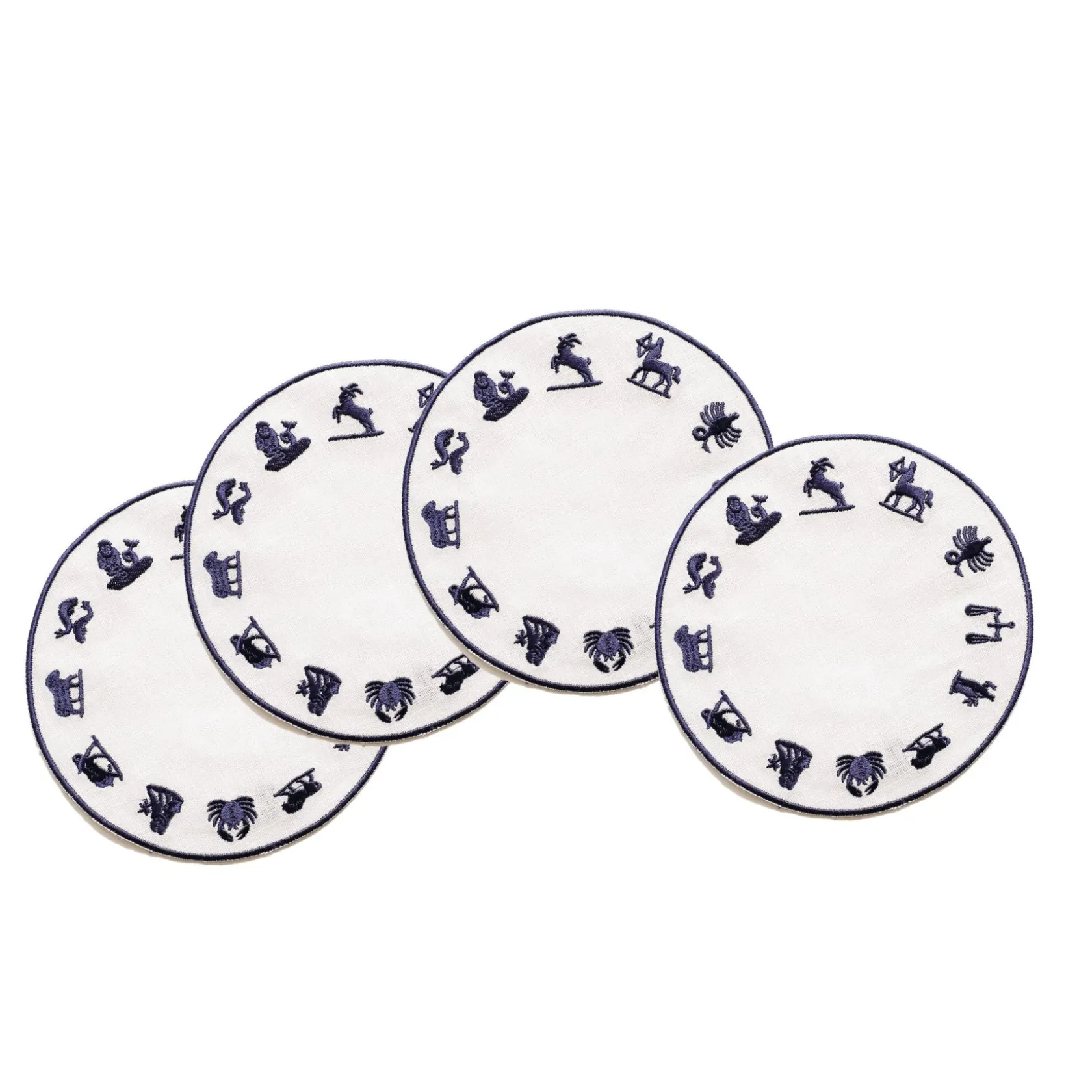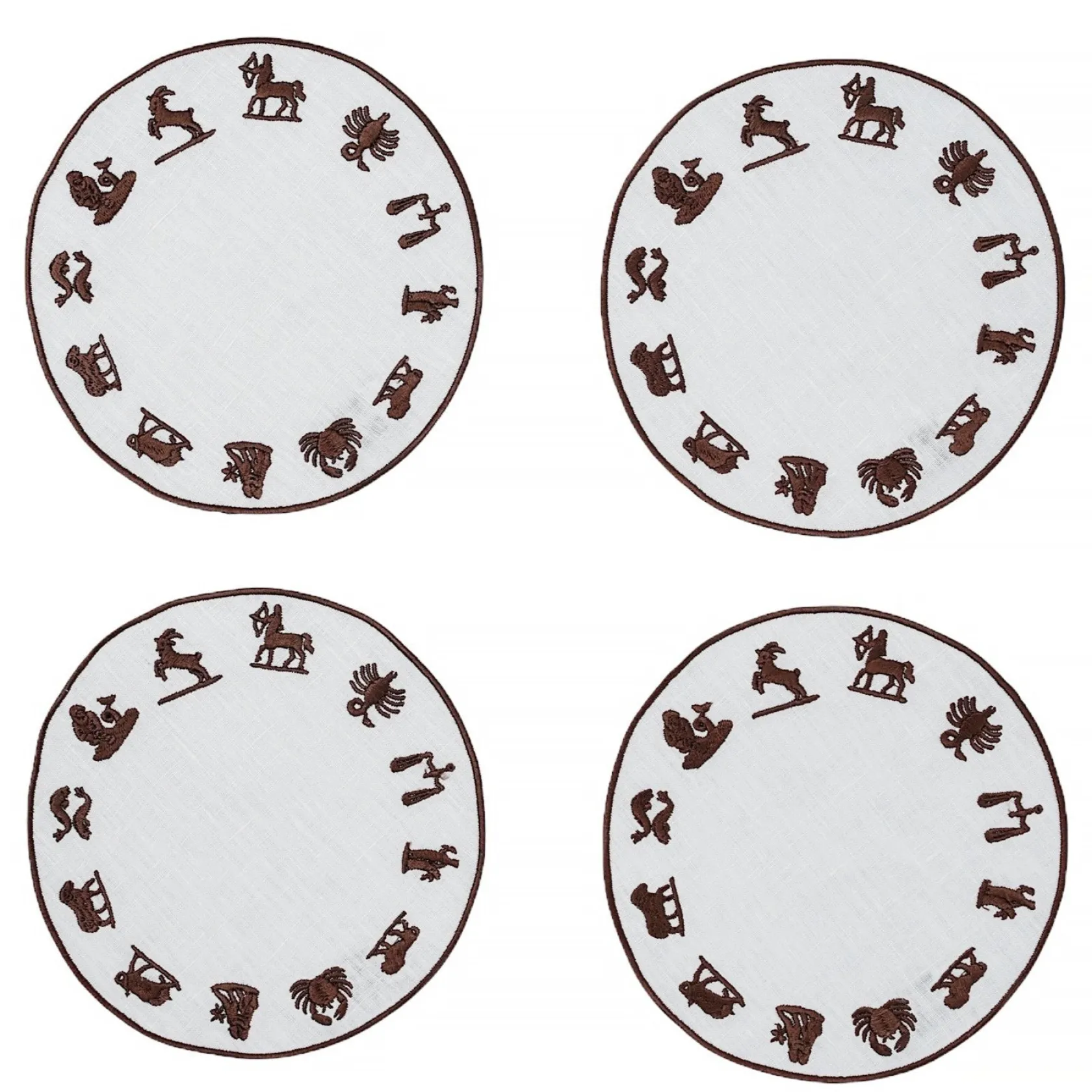 These round napkins depict a Zodiac wheel with all 12 signs.