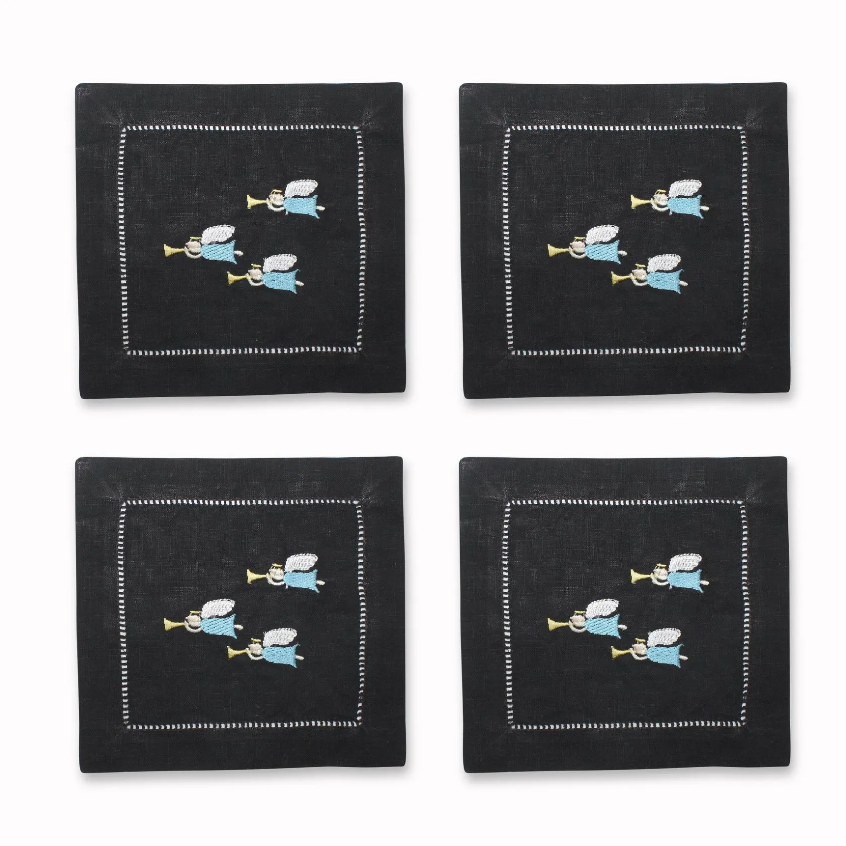 ‘Tis the season to have a cocktail in hand — and a corresponding cocktail napkin! By hand, we’ve embroidered angels on linen black cocktail napkins. It’s the ultimate cocktail napkin for your cocktail party!