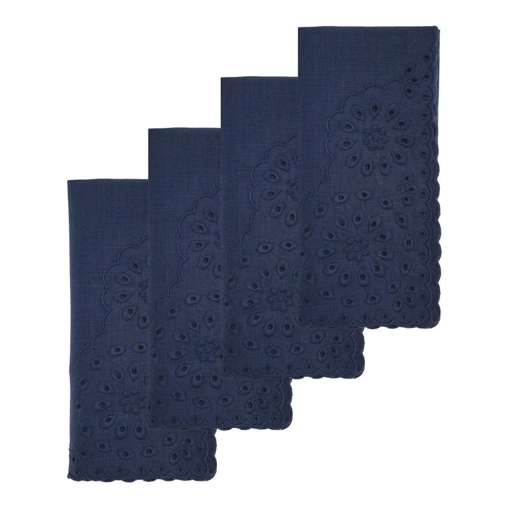 A set of dinner napkins featuring a timeless elegant eyelet pattern