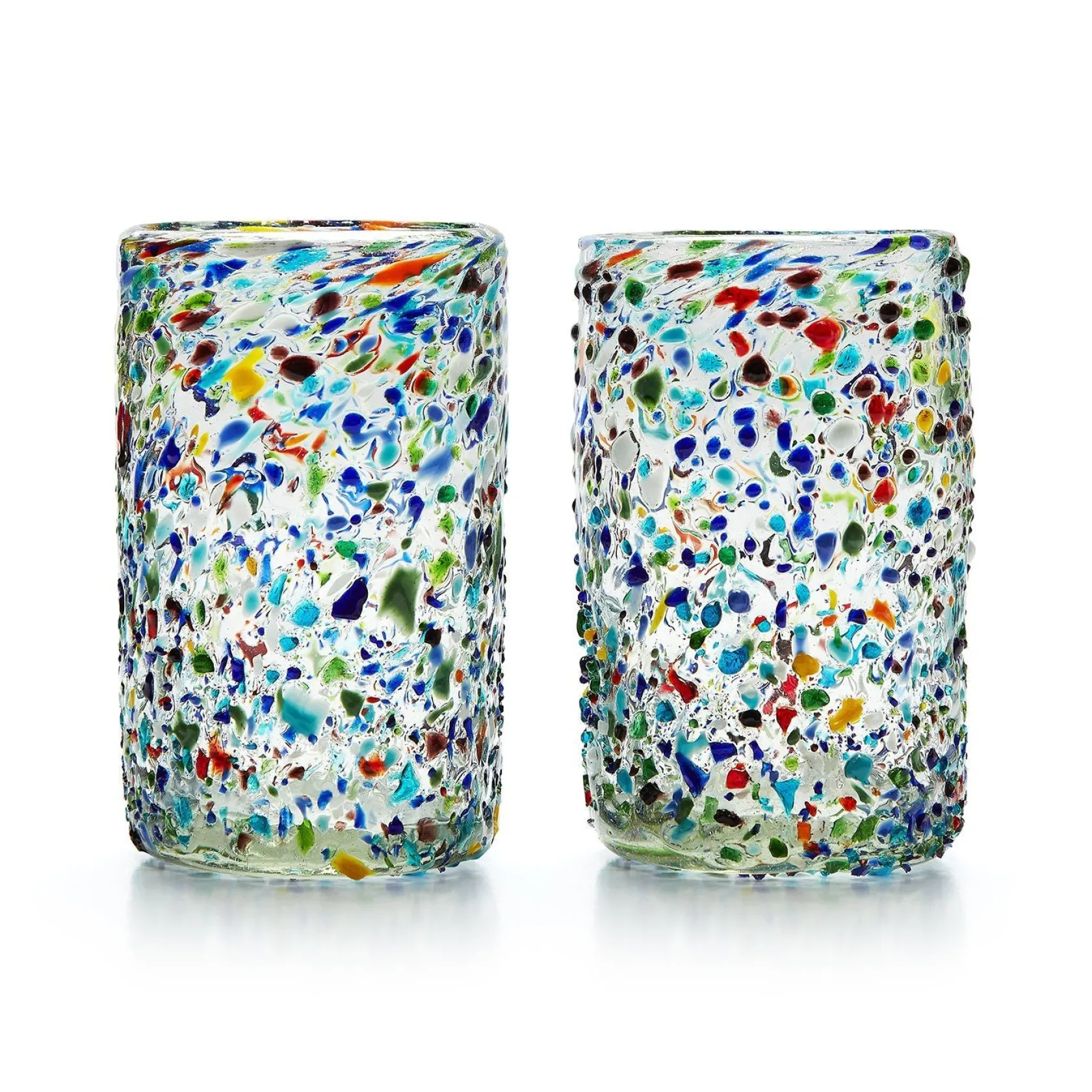 This set of 2 drinking glasses is blown by hand.