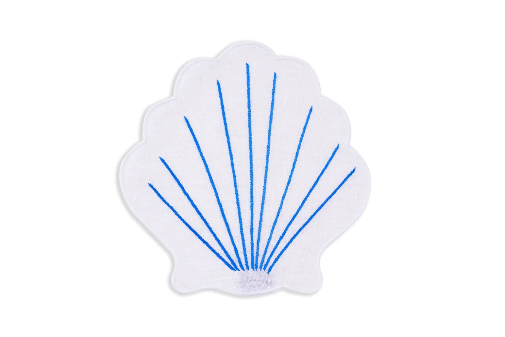 Shaped like a scallop shell, our “Coquilles” cocktail napkins are perfect for a beachy summer soirée. The lines of the “shells” are embroidered with blue thread.