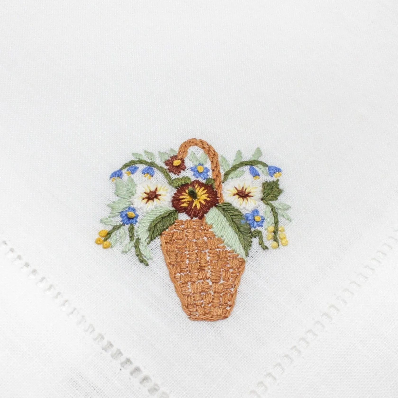 — Hand embroidered on white linen