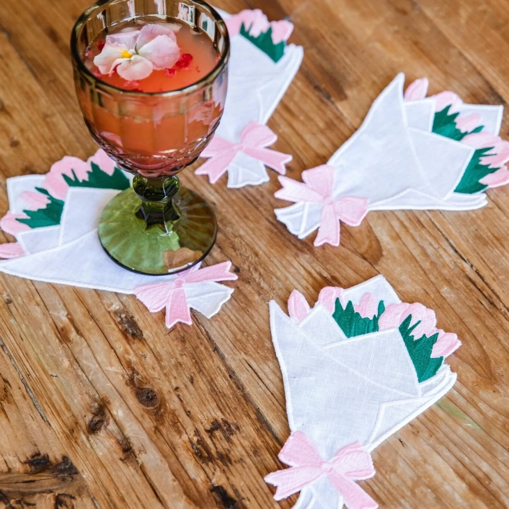 Shaped like a charming bouquet of bodega flowers, these cocktail napkins are perfect for Easter or your springtime bar cart! They also make a lovely gift in addition to or in lieu of a bouquet of fresh flowers.