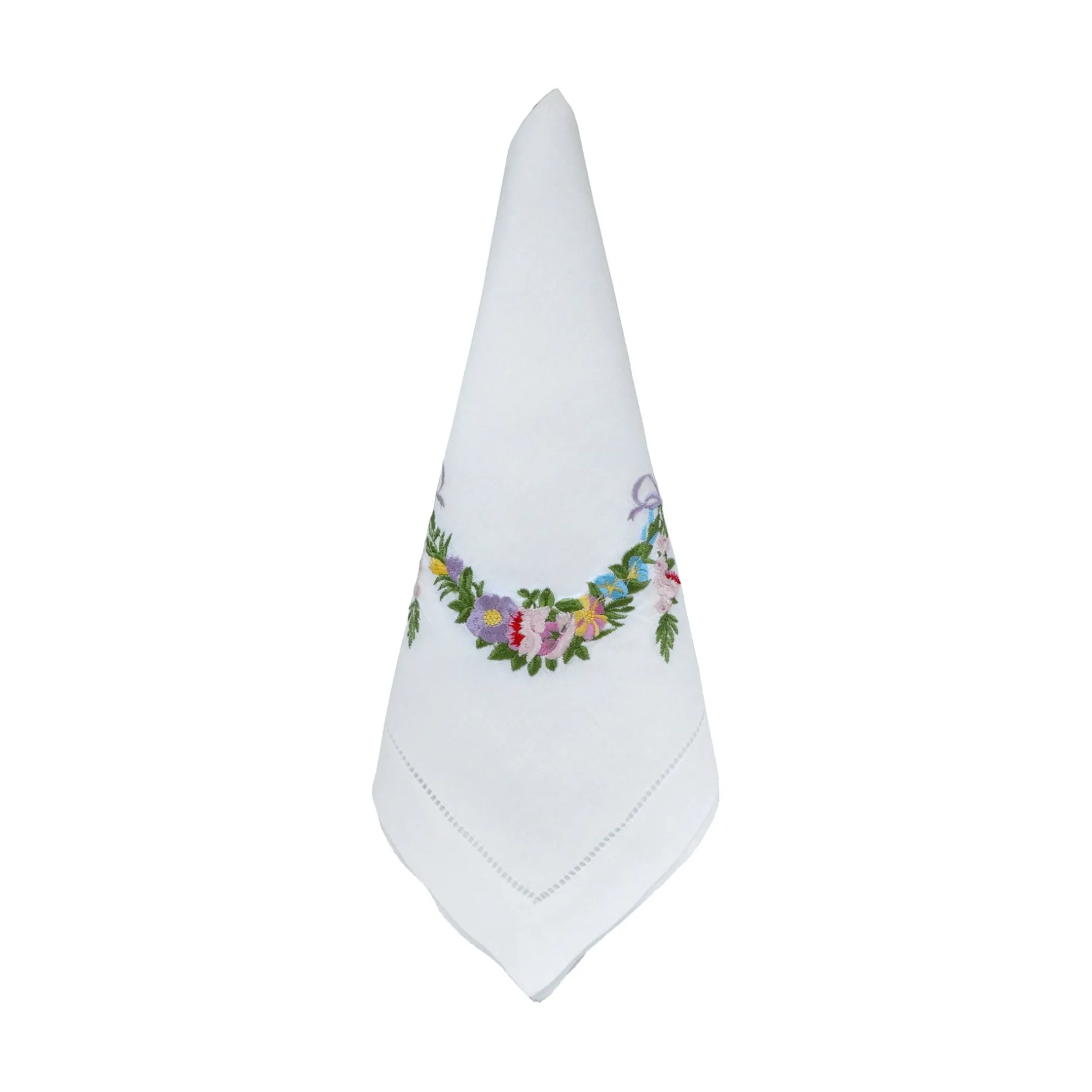 These napkins show a mixed flower garland – perfect for spring holidays, like Easter, Passover, or Mother’s Day