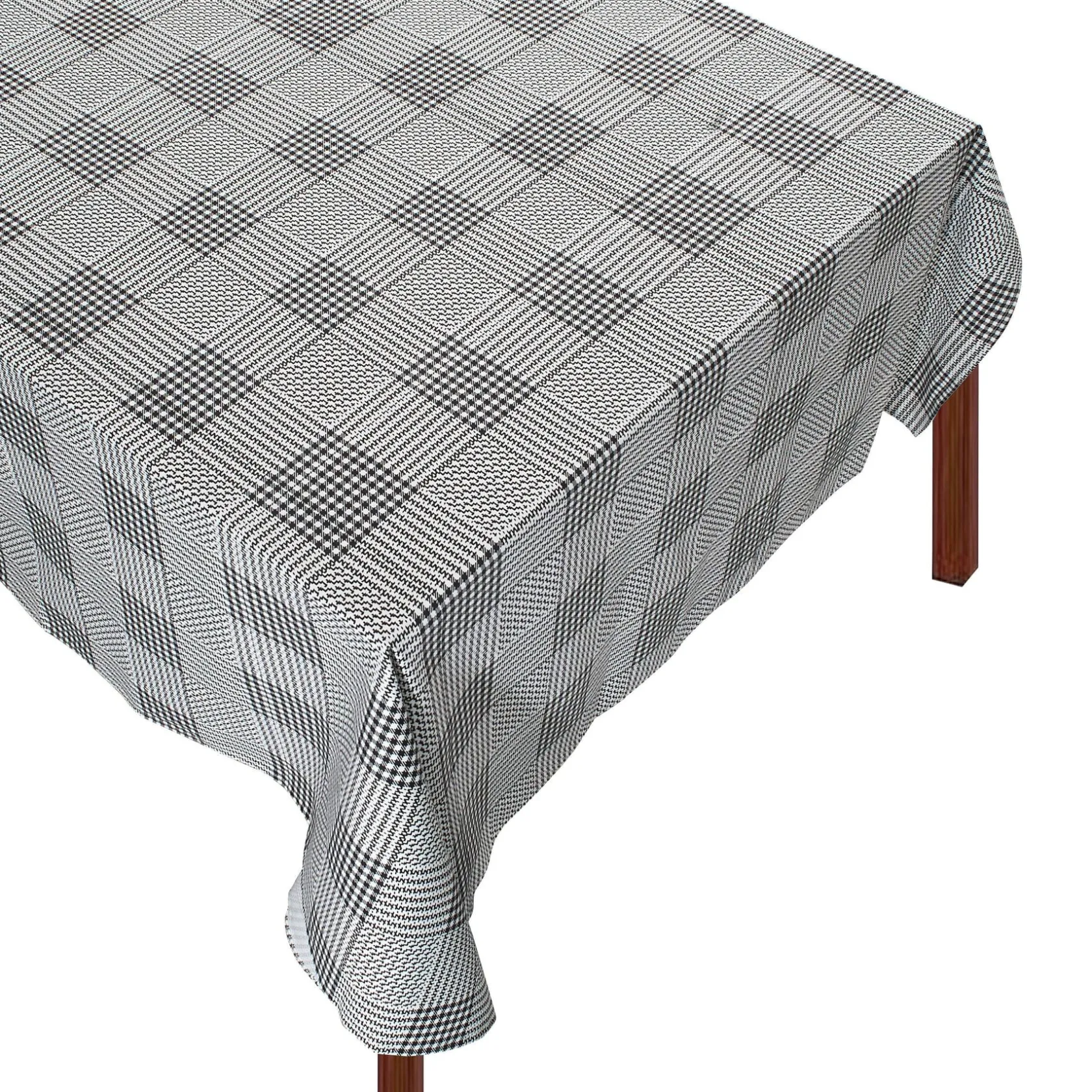 Tablecloth with Glen black & white plaid for sophisticated seated meals.