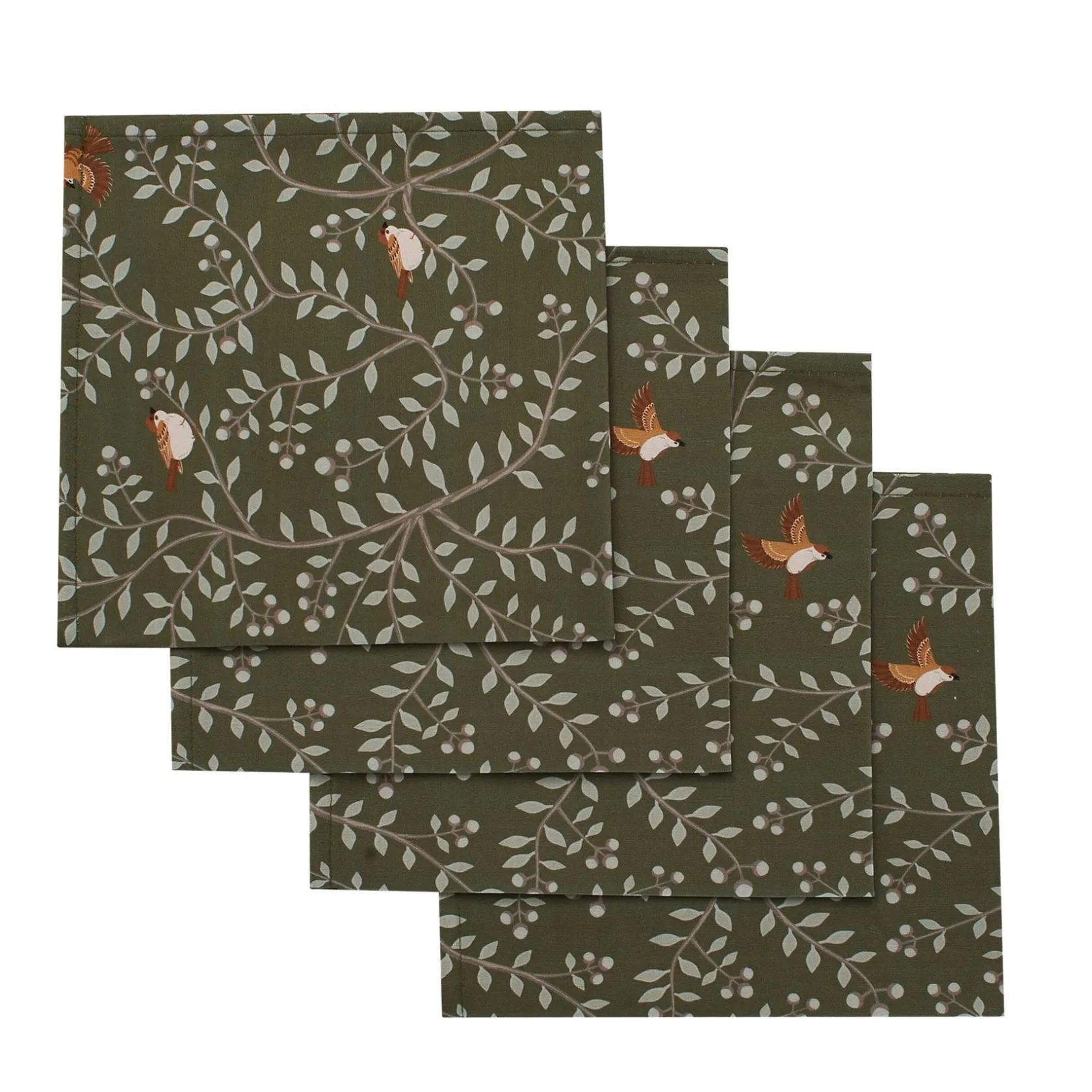 Napkins inspired by endless branches of leaves and birds to enjoy year round.