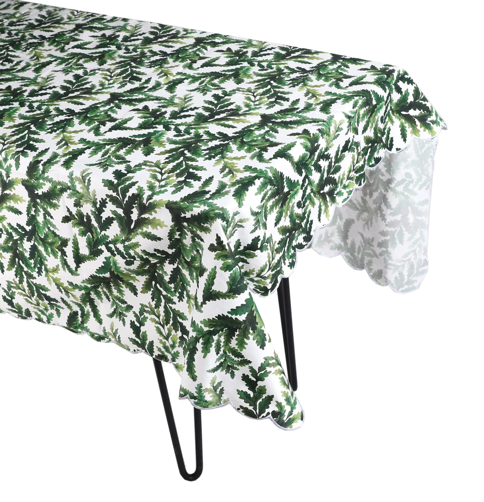 Each tablecloth is 100% cotton and finished with a scalloped edge. There may be minor variations across tablecloths.