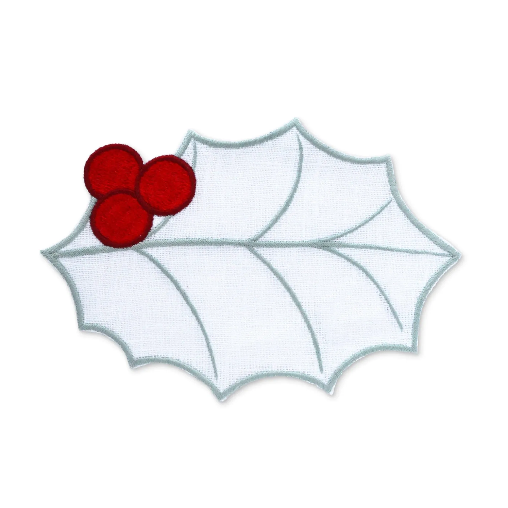 Shaped like a holly leaf with red berries, these linen fabric cocktail napkins are the cutest accessory at a tree trimming, holiday party or Christmas celebration.