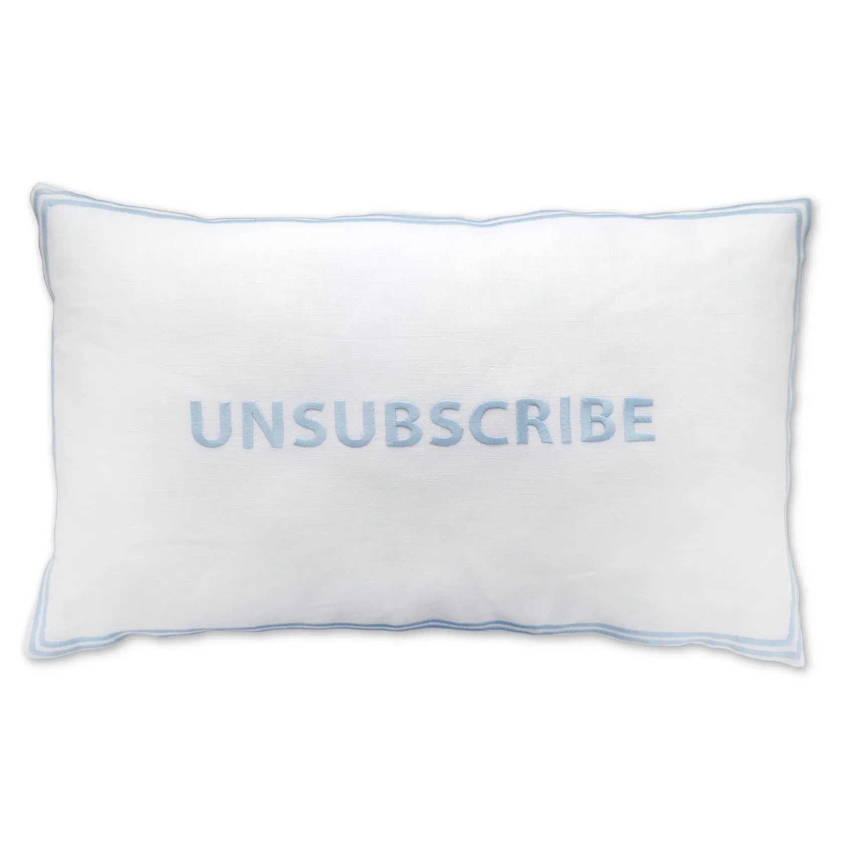 This cheeky pillowcase with an imperative to “Unsubscribe” takes on different meanings depending on its placement within the home.