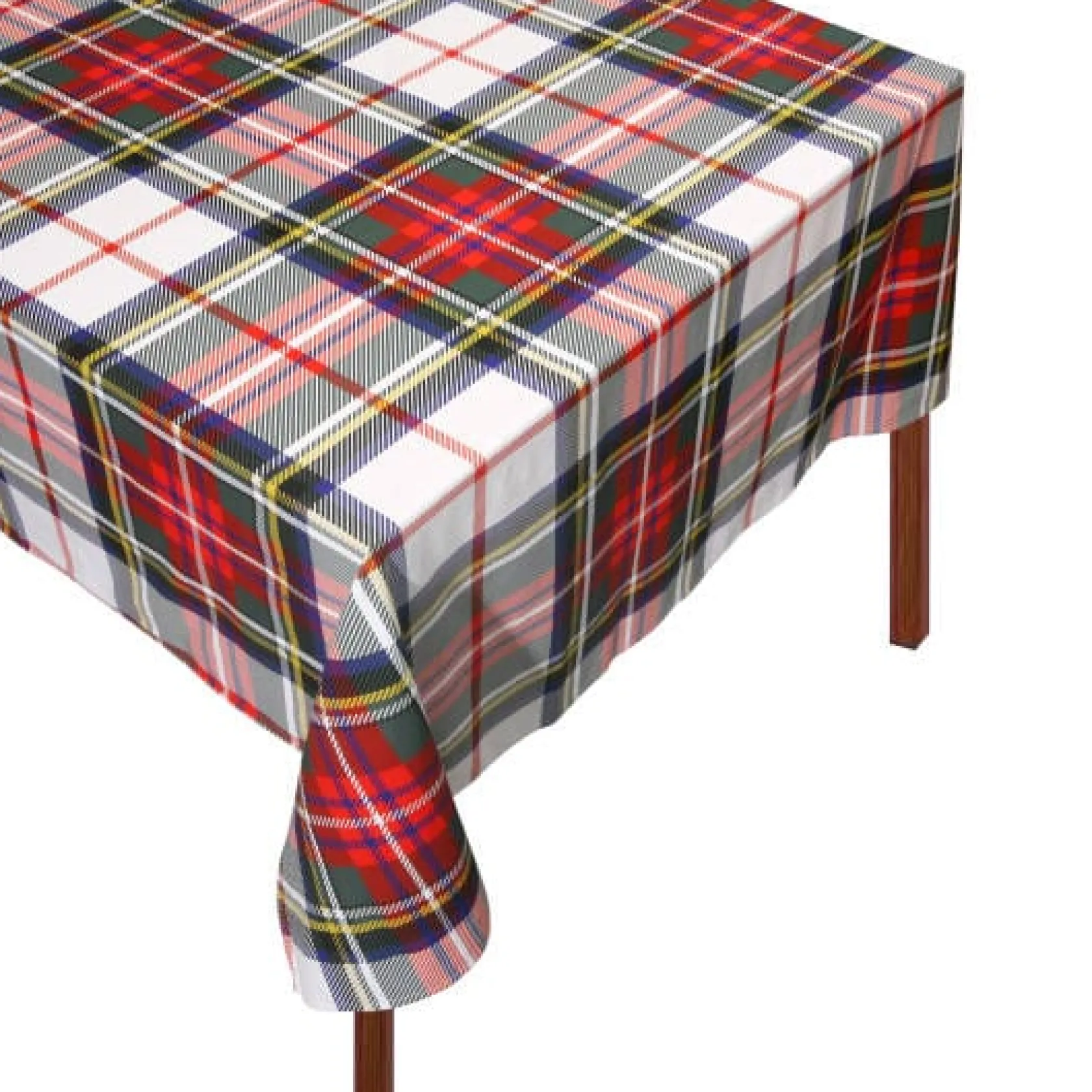 This white plaid tablecloth is classic and fresh for Christmas and holiday holiday season.