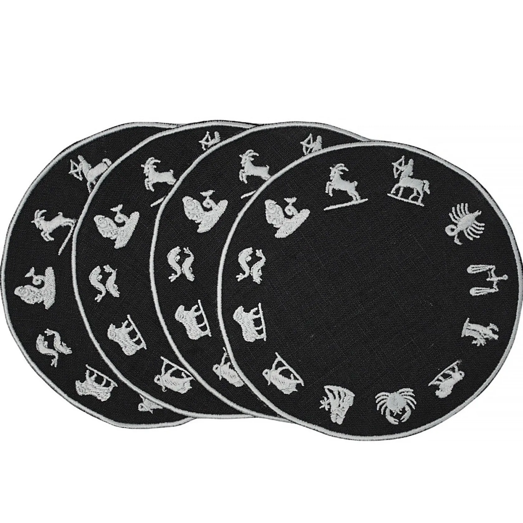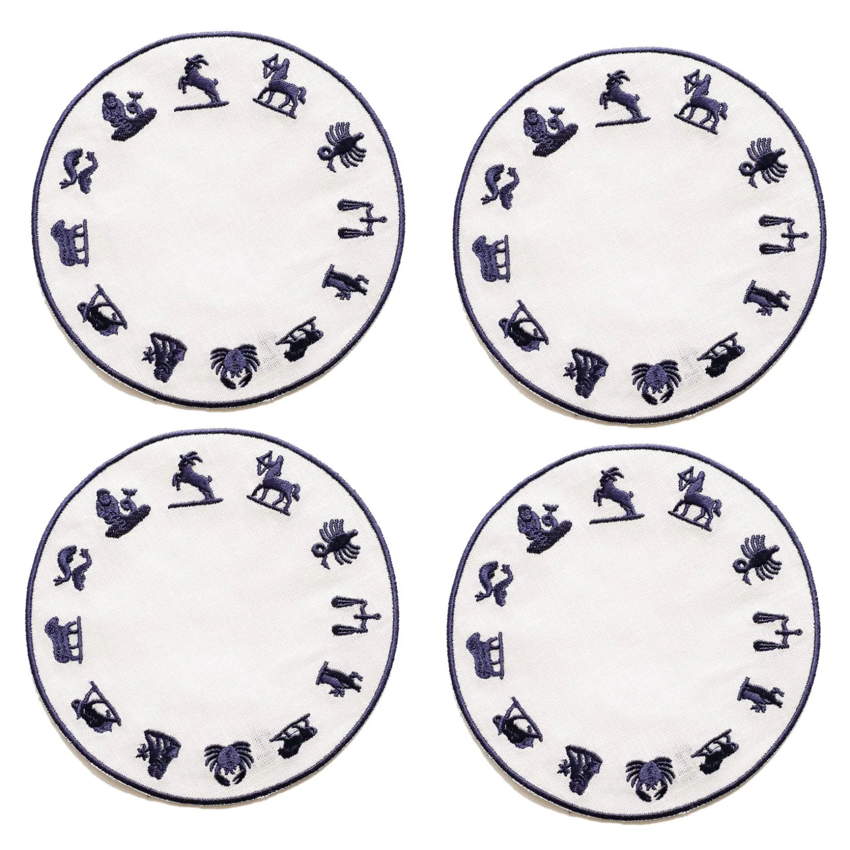 These round napkins depict a Zodiac wheel with all 12 signs.
